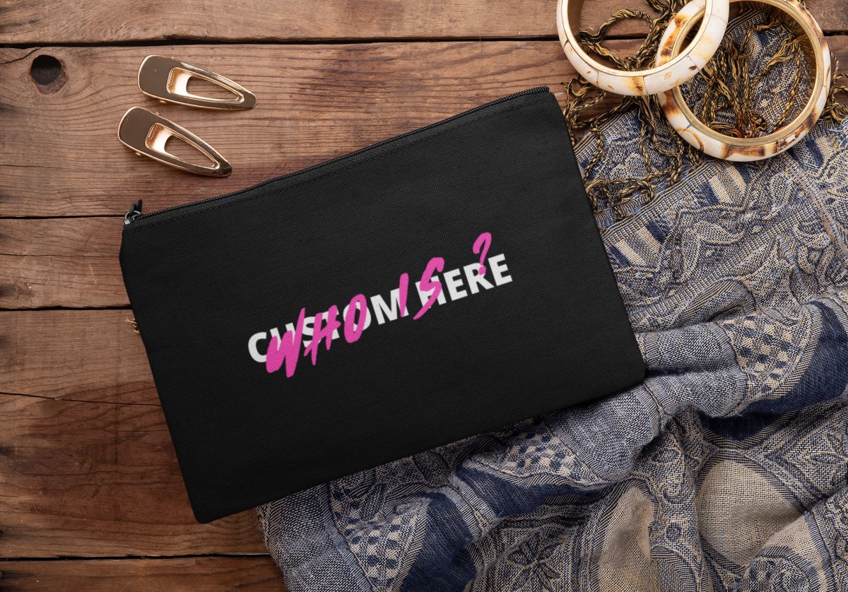 “Who is?” collection. Its bold typography in pink and green adds a touch of intrigue to